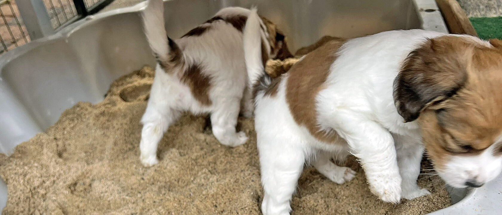 Abends auch noch Revierderby MSV gegen Rot Weiß Essen … Herrchen hat einmal doll laut gejubelt, aber auch laut geschimpft. Die Welpis hat das nicht ganz so doll interessiert …