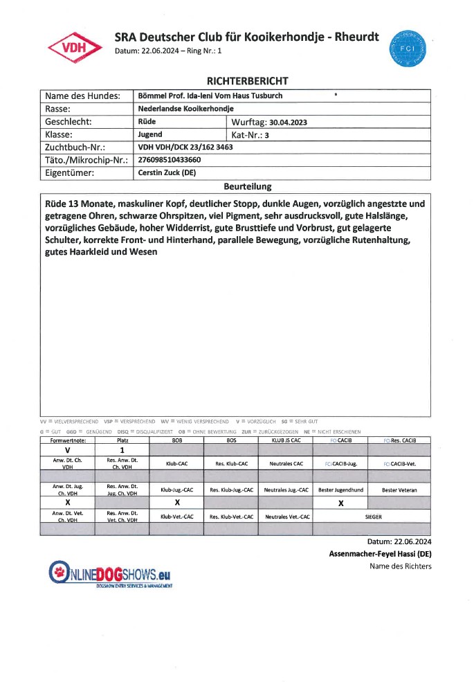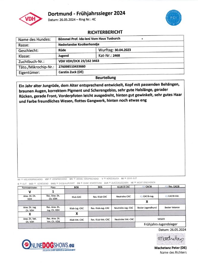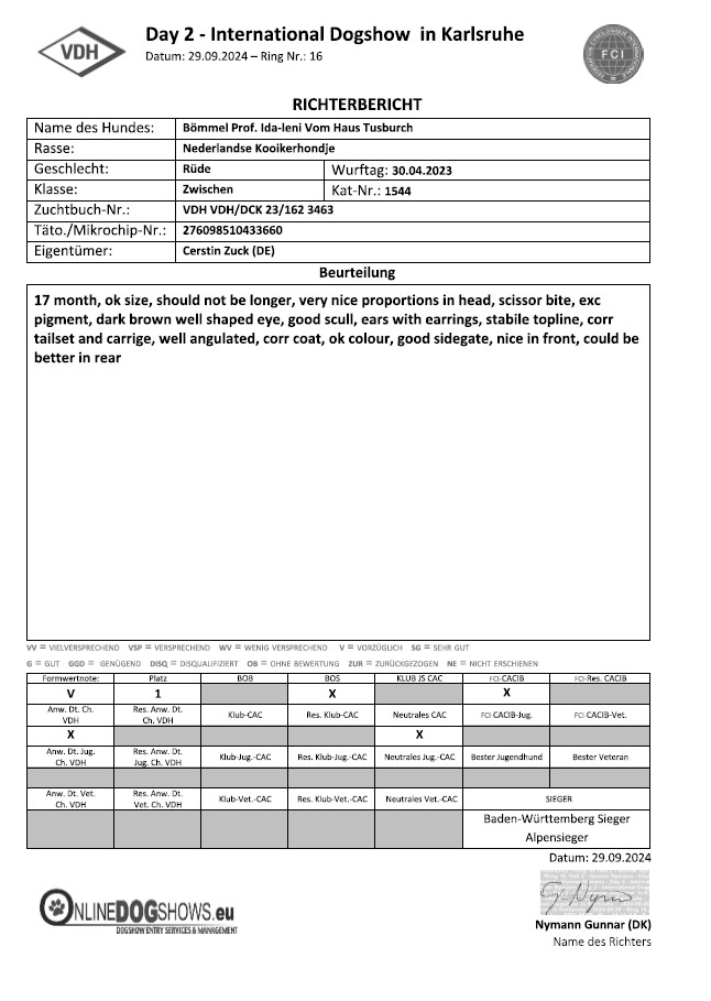 Stand 04/2025: Herzlichern Glückwunsch an Bömmel und Frauchen Cerstin: Bömmel ist nun offiziell DCK-Zuchtrüde. Toll! Nun wird es bald kleine Bömmelchen geben 😉