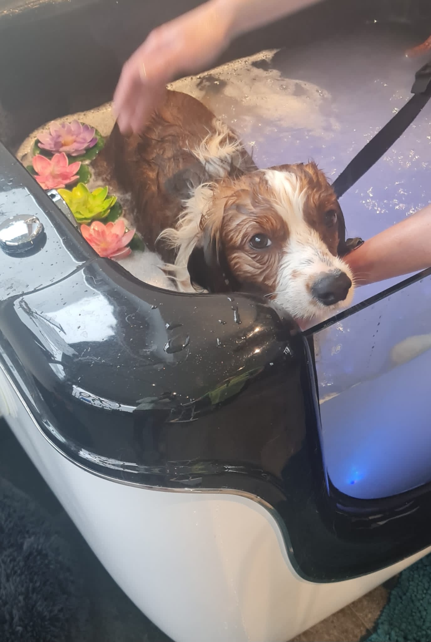 Gusti liebt Wasser, aber nicht unbedingt sauberes.