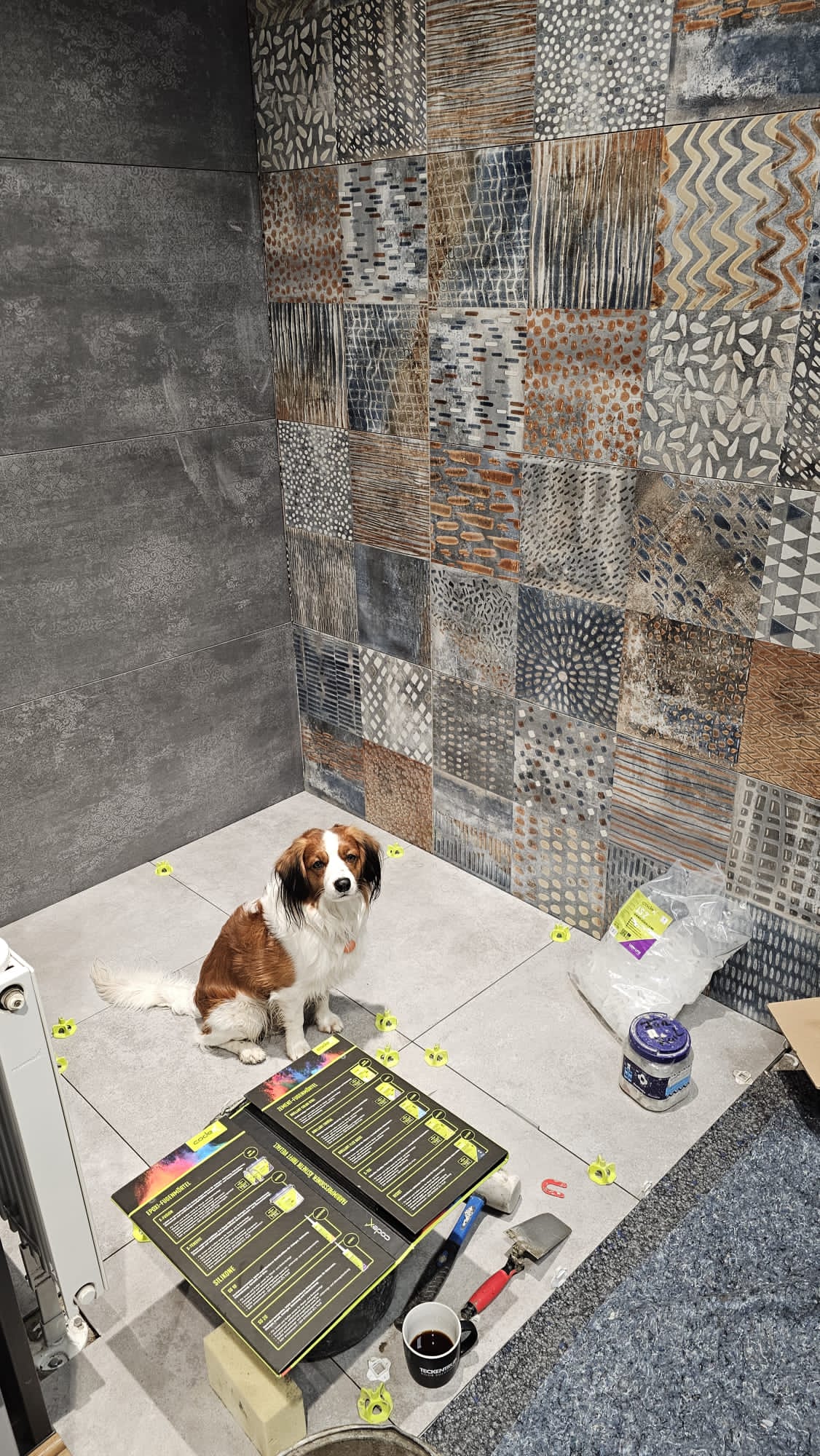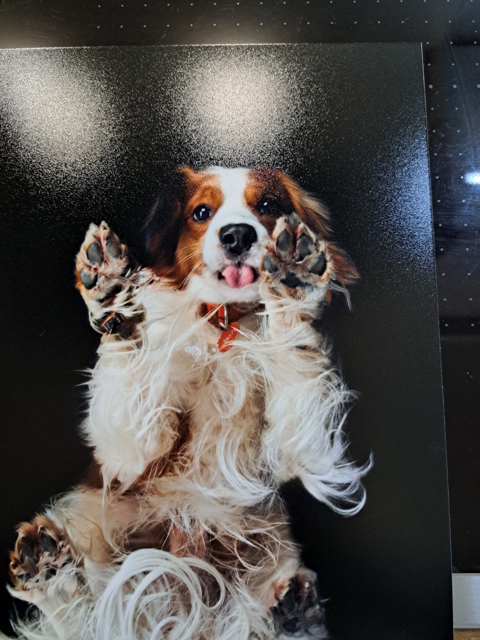 Er macht Werbung für Fliesen und für den Tag des Hundes ist er der Werbeträger im Hundeverein.