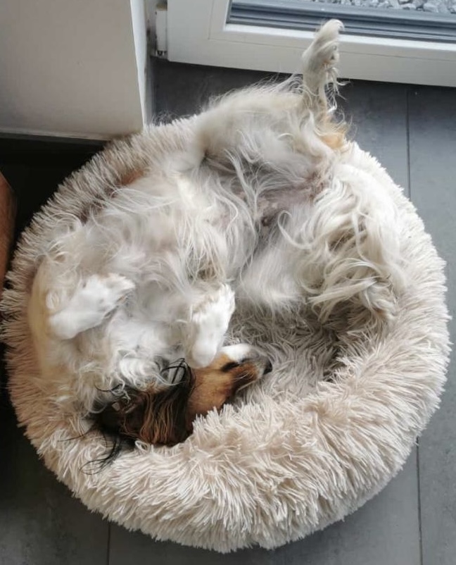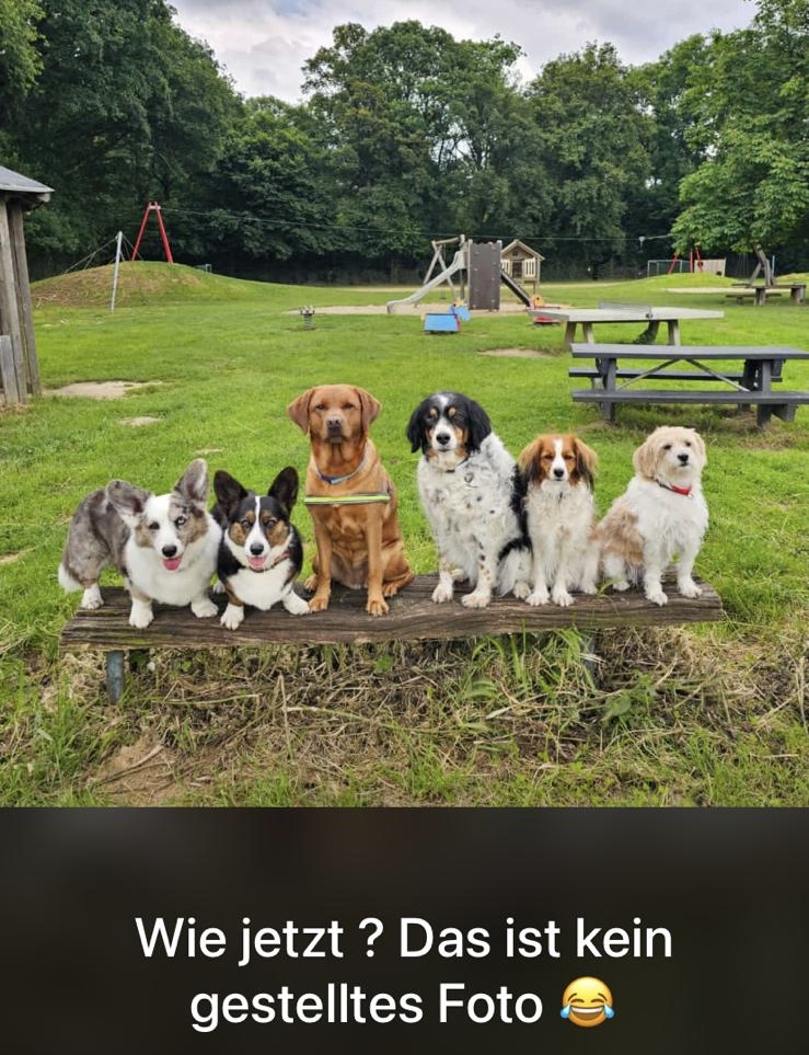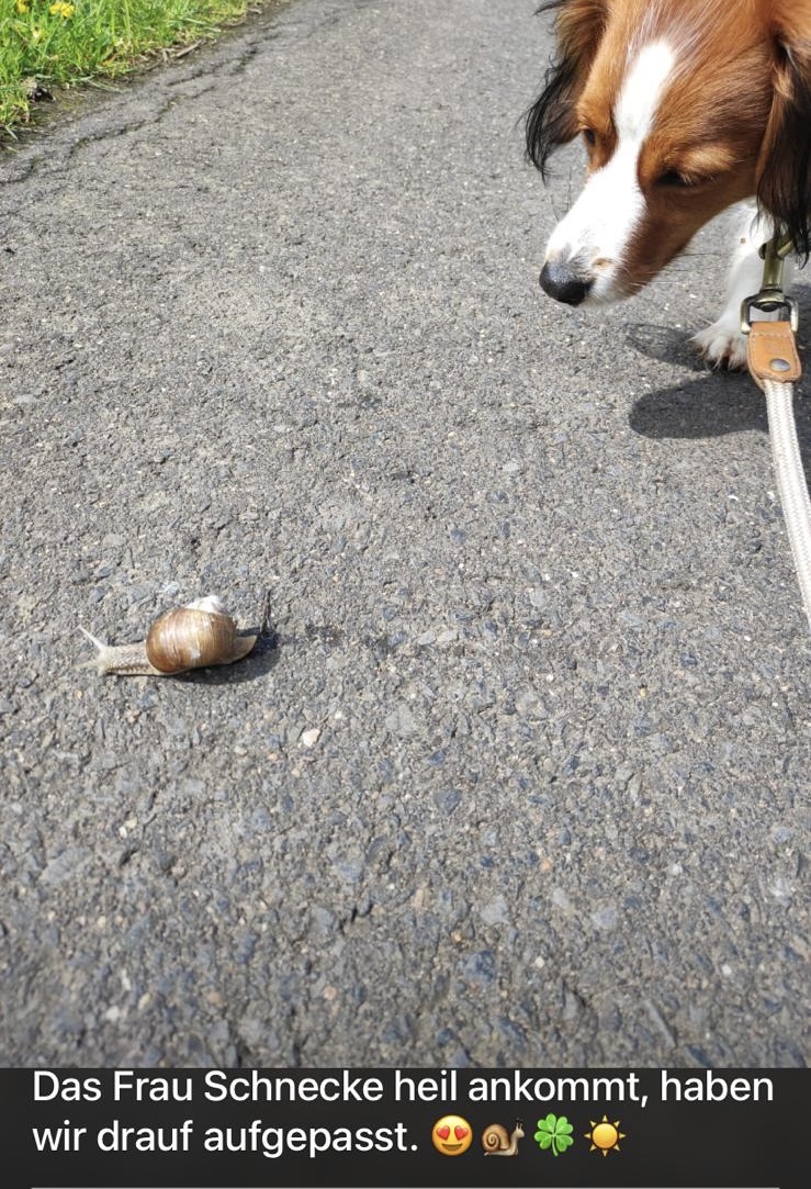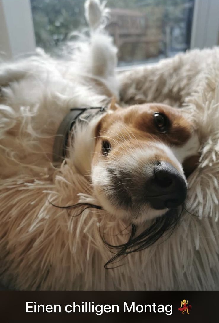 „Ich liebe es, Tauben aus dem Garten zu verscheuchen und die schönen Spaziergänge in unserem Wald 🌳, außerdem genieße ich es, mit meiner Hunde-Clique, die Welt zu erkunden! Mein Lieblingshobby ist mit Herrchen und Frauchen Futtersuchspiele zu machen, aber am meisten liebe ich es abends auf der Couch gekrault zu werden. Ganz liebe Grüße 🐶🤗“